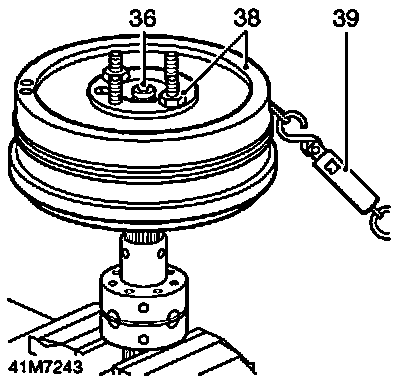 38. Fit transmission brake drum to output flange, secure with 2 nuts.
