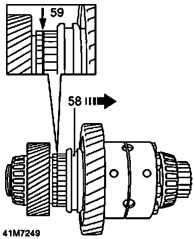 60. If clearance is not as specified, fit new high range gear and high/low hub and re-check.