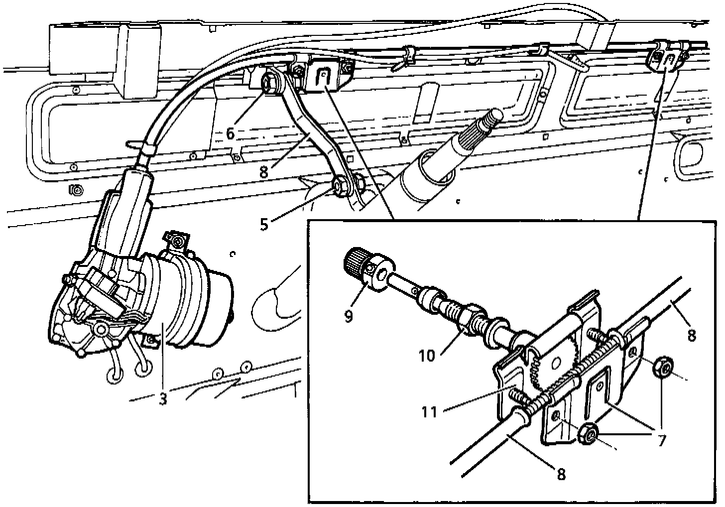 15. Align wiper motor and mounting pad, secure with retaining strap and tighten drive tube nut.