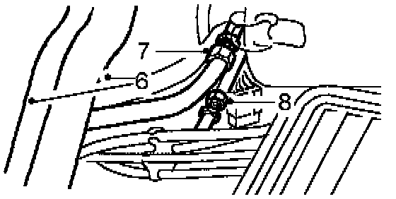 6. Position 2 heater hoses to side of air intake tube.