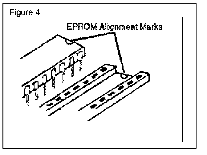 1. Orient cutout on the EPROM toward the red connector and match the cutout on the EPROM to the alignment marks on the PROM socket. (Figure 4)