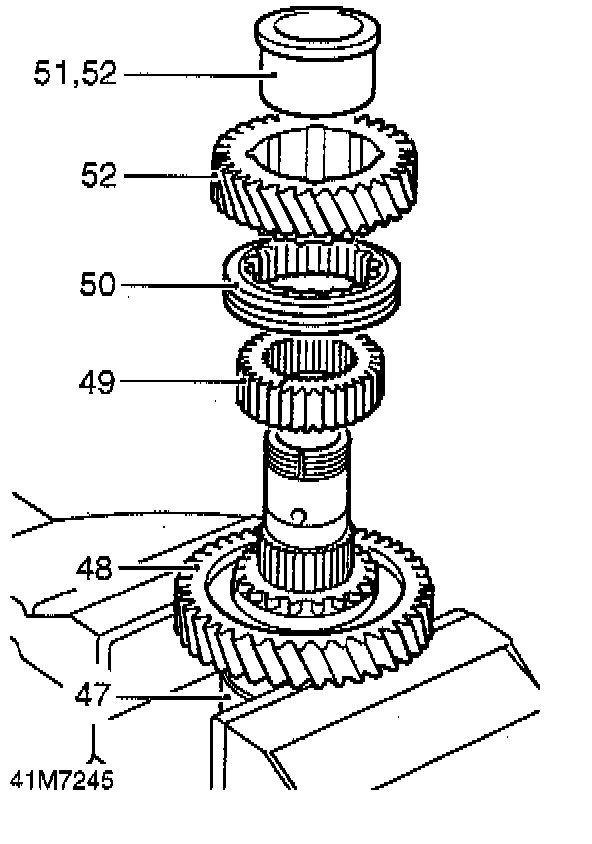51. Install bush to high range gear ensuring that collar on bush is on opposite side of gear to the dog teeth.
