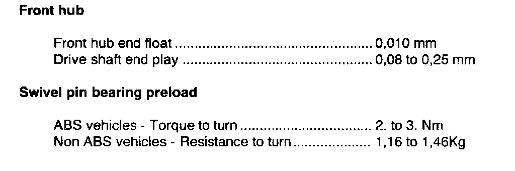 Front hub and swivel data