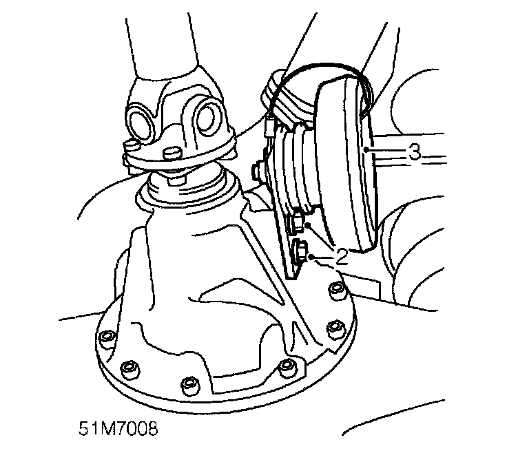 2. Remove 2 bolts securing mass damper to rear axle.