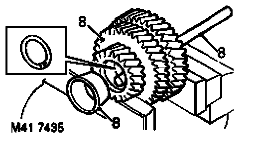 7. Remove intermediate gear assembly and collect bearings and selective or collapsible spacer. If a collapsible spacer is fitted, discard it.