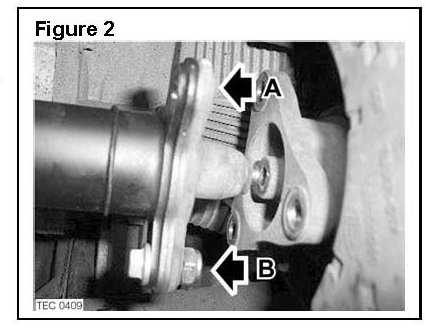 5. Secure the centering flange with a nut and bolt ("B" Figure 2).