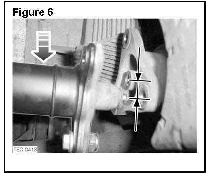 11. If the measured distances are equal both above and below the locating bushing (Figures 3 & 4), the differential is correctly aligned to the transfer box front output flange. Go to section Install Front Propeller Shaft".
