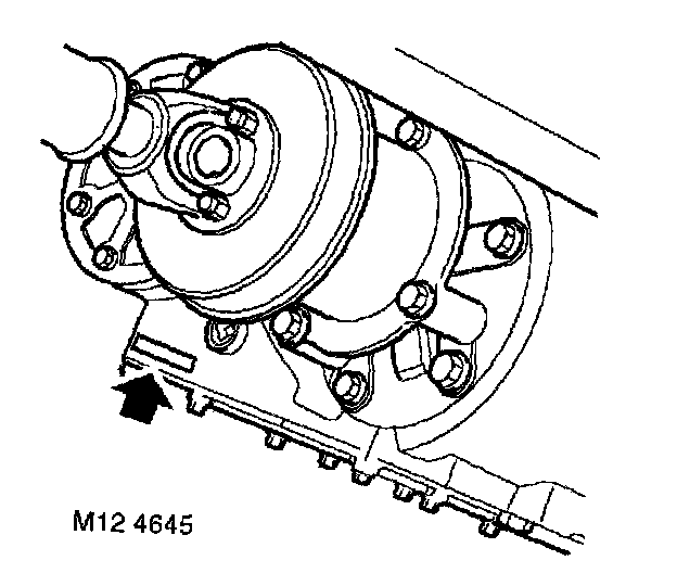 Stamped on the rear of the transfer box casing above the bottom cover plate.