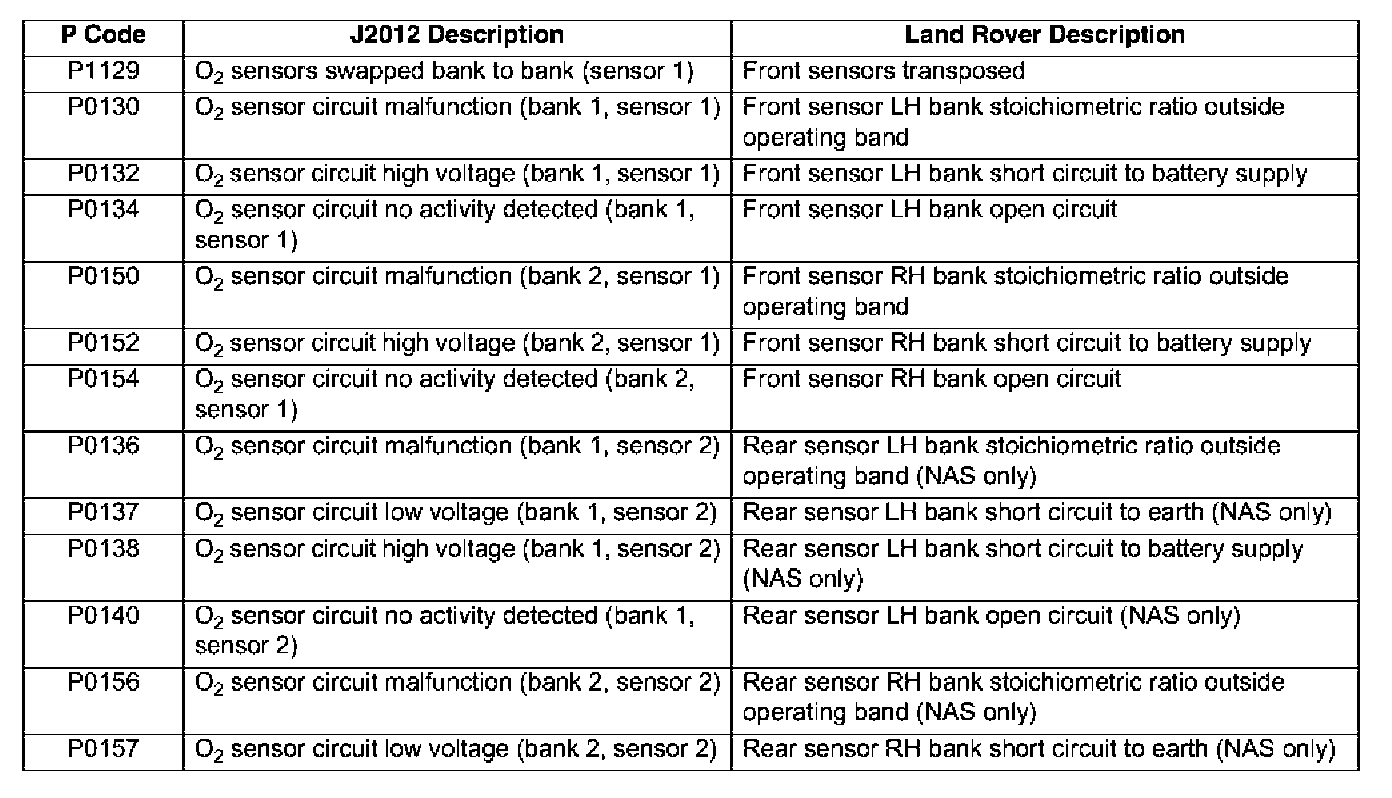 ^ If the sensors are crossed over (LH bank to RH bank), the engine will run normally after initial start up, but performance will become progressively worse as the sensors go towards maximum rich for one bank of cylinders and maximum lean for the other. The ECM will eventually default into open loop fuelling.