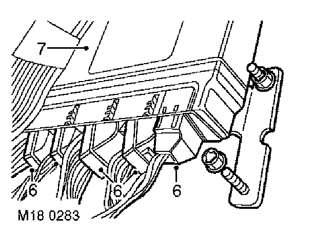 5. Remove 2 nuts and release ECM from studs and location on 'A' post lower panel.