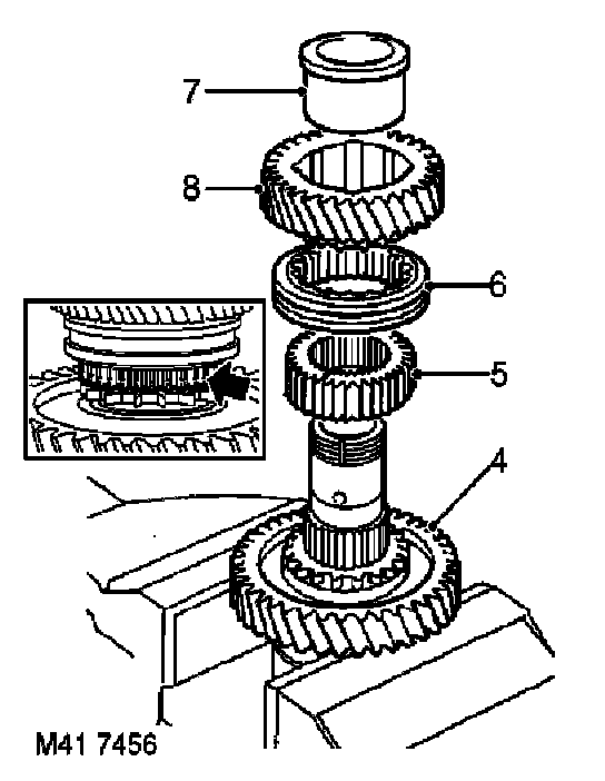 7. Fit bush to high range gear ensuring collar is uppermost.