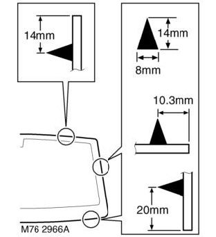 CAUTION: Do not apply heavy pressure to the sides of the windscreen. Lightly press windscreen from centre outwards until edges are to required gap. Pushing sides into position can bend windscreen and lead to cracking in service.