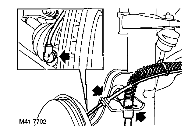 23. Position ABS harness and brake hose in bracket and secure with clip.