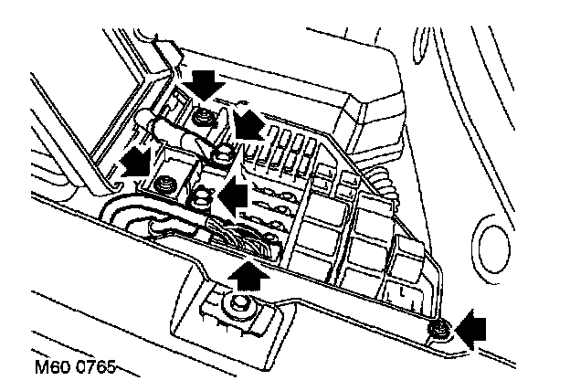 13. LH side: Position fusebox, fit nuts and tighten to 8 Nm (6 ft. lbs.).