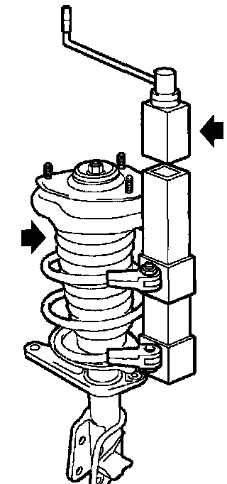 4. Position spring and damper assembly to spring compressor. Compress spring.