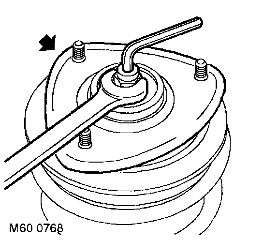 21. Compress spring by 2 to 3 cm until loose, hold damper shaft with Allen key, remove and discard mounting plate nut.