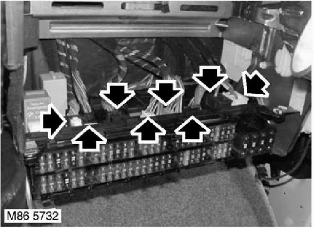 3. Noting fitted position, disconnect 8 multiplugs from fuse box.