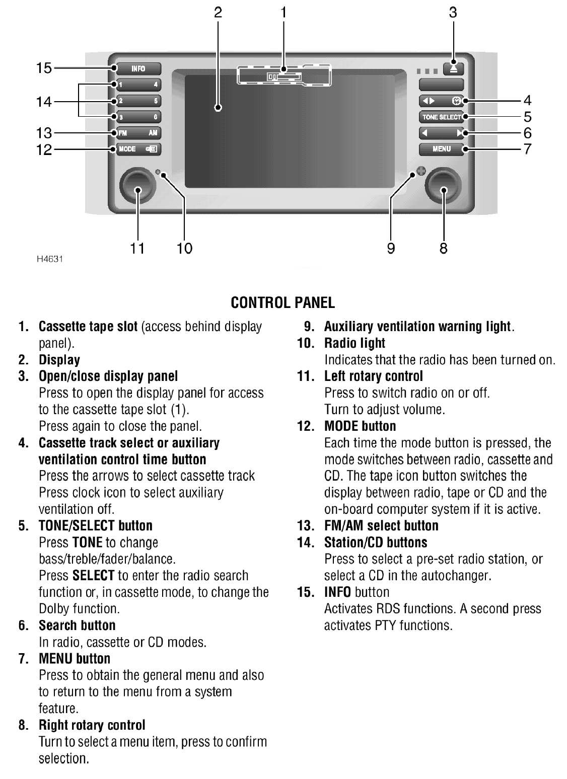 - For auxiliary ventilation control, always leave the ignition key in position 'I'.