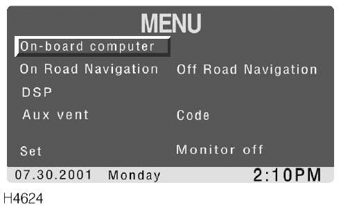 The on-board computer must be selected from the general menu before you can carry out any of the on-board computer functions.