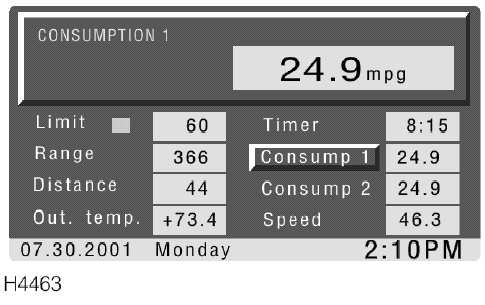 If at some point during your journey you wish to calculate fuel consumption for a particular part of that journey, select 'Consump 2'.