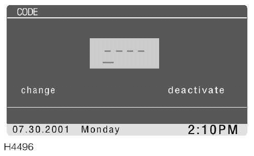 NOTE: When the code is activated, the driver will need to enter the 4-digit code each time the engine is started. If the code is not available or has been forgotten, emergency deactivation is possible.