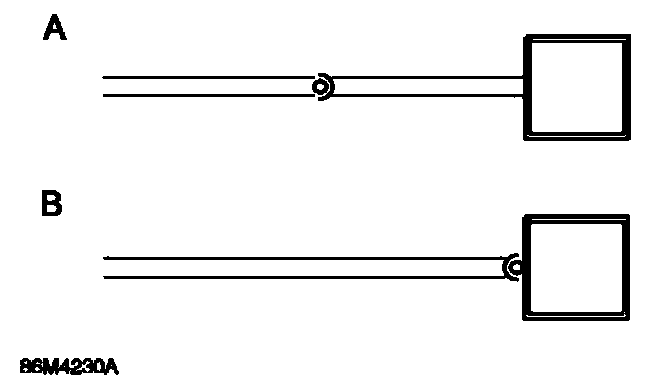 Fusible links(A) and current rated fuses (B) are identified as shown.
