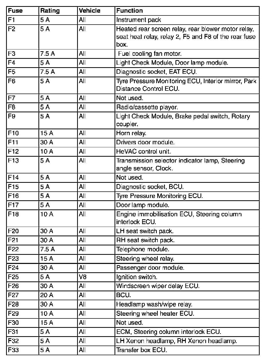 Rear Fuse Box - behind the luggage compartment RH trim casing