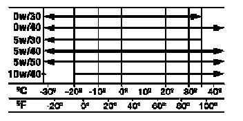 The above chart indicates the ambient temperature ranges which each engine oil viscosity is suitable for.