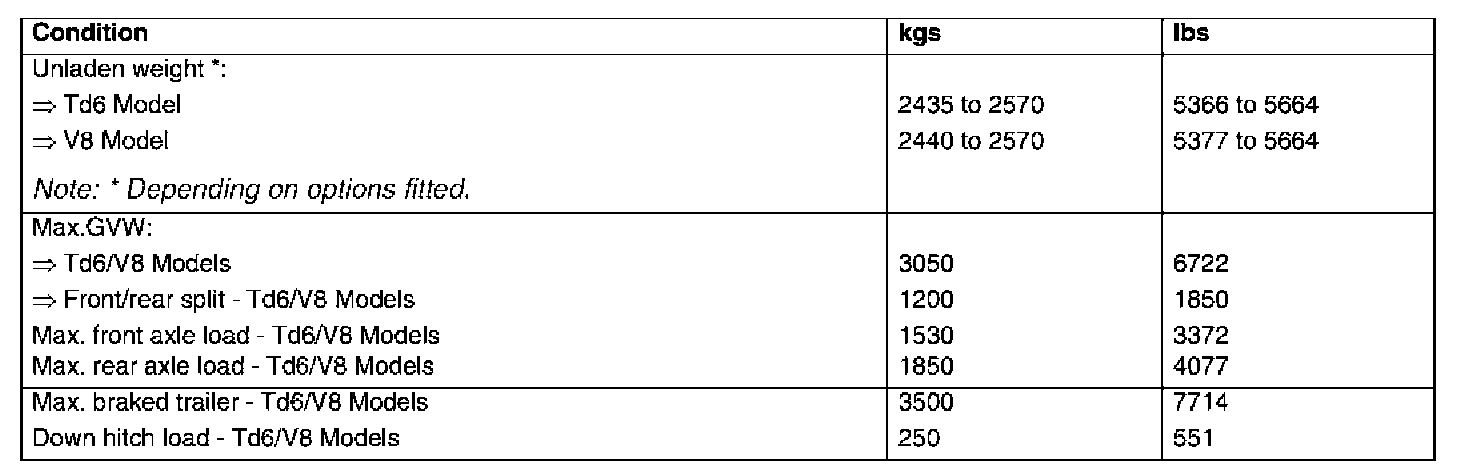 CAUTION: Axle weights are non additive.The individuals maximum weights and gross vehicle weight must not be exceeded.