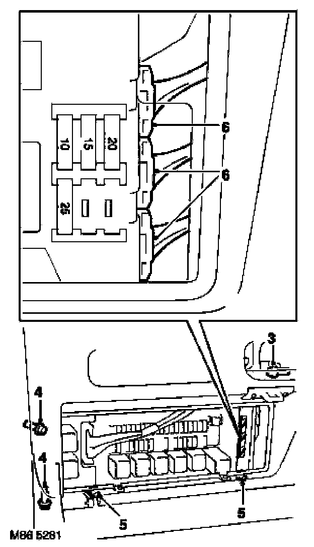 4. Fit bolts securing fuse box to mounting bracket and tighten to 8 Nm (6 lbf.ft).