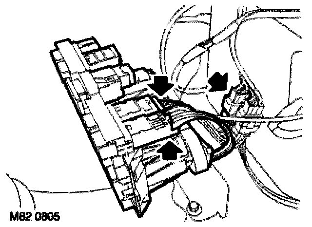 7. Disconnect 3 multiplugs from A/C switches and heater harness.