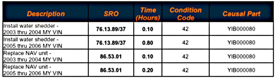 Action: When repairing any faults to Navigation Units or other electrical hardware in the left hand rear of the vehicle caused by water ingress, refer to the applicable model year Repair Procedure detailed in this bulletin to install water ingress protection when replacing the navigation unit.