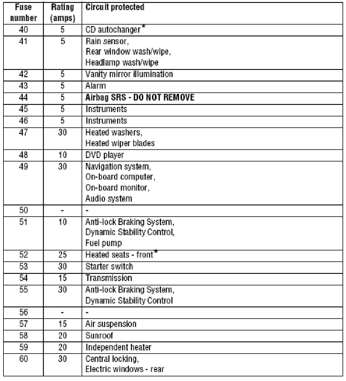 Fuses 40 - 60:
