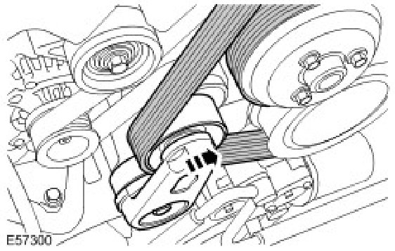 ^ Rotate the accessory drive belt tensioner counter-clockwise, using a 3/8 " drive wrench.