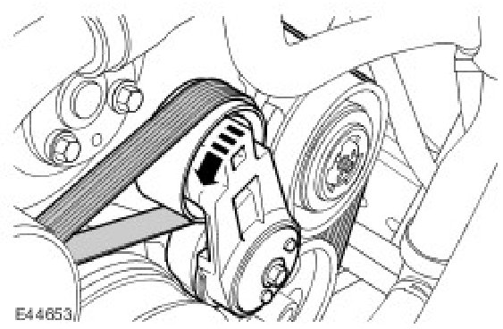 ^ Loosen the cooling fan belt tensioner bolt to aid the removal of the belt.
