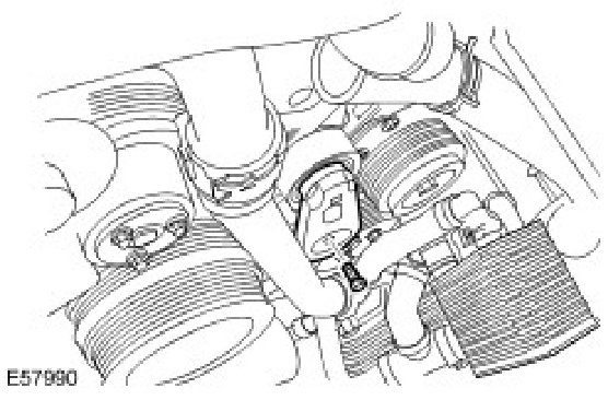 ^ Tighten the cooling fan belt tensioner bolt to 40 Nm (30 ft. lbs.).