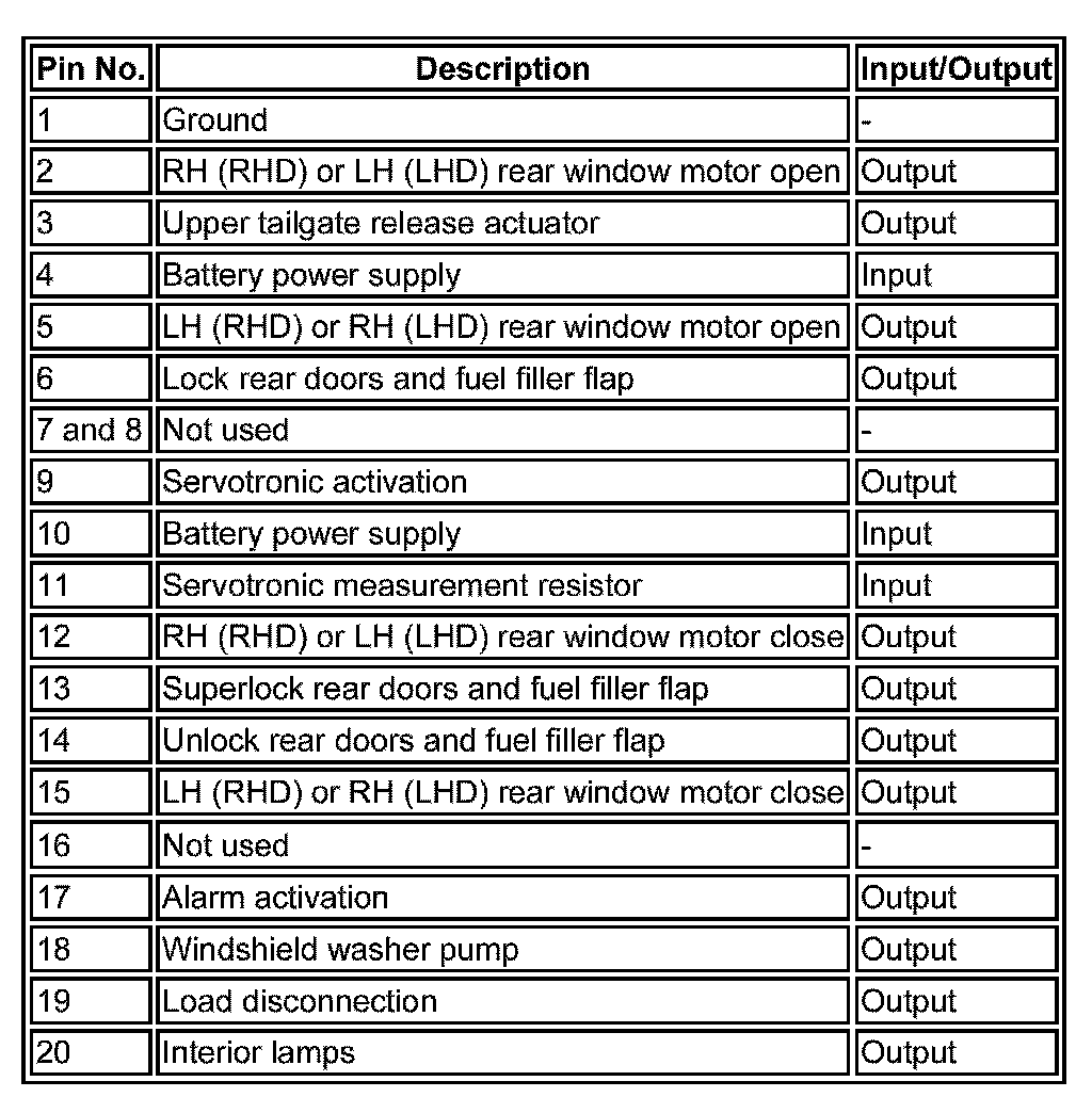 ^ Any door status switch (driver, front passenger, LH (left-hand) and RH (right-hand) rear doors)