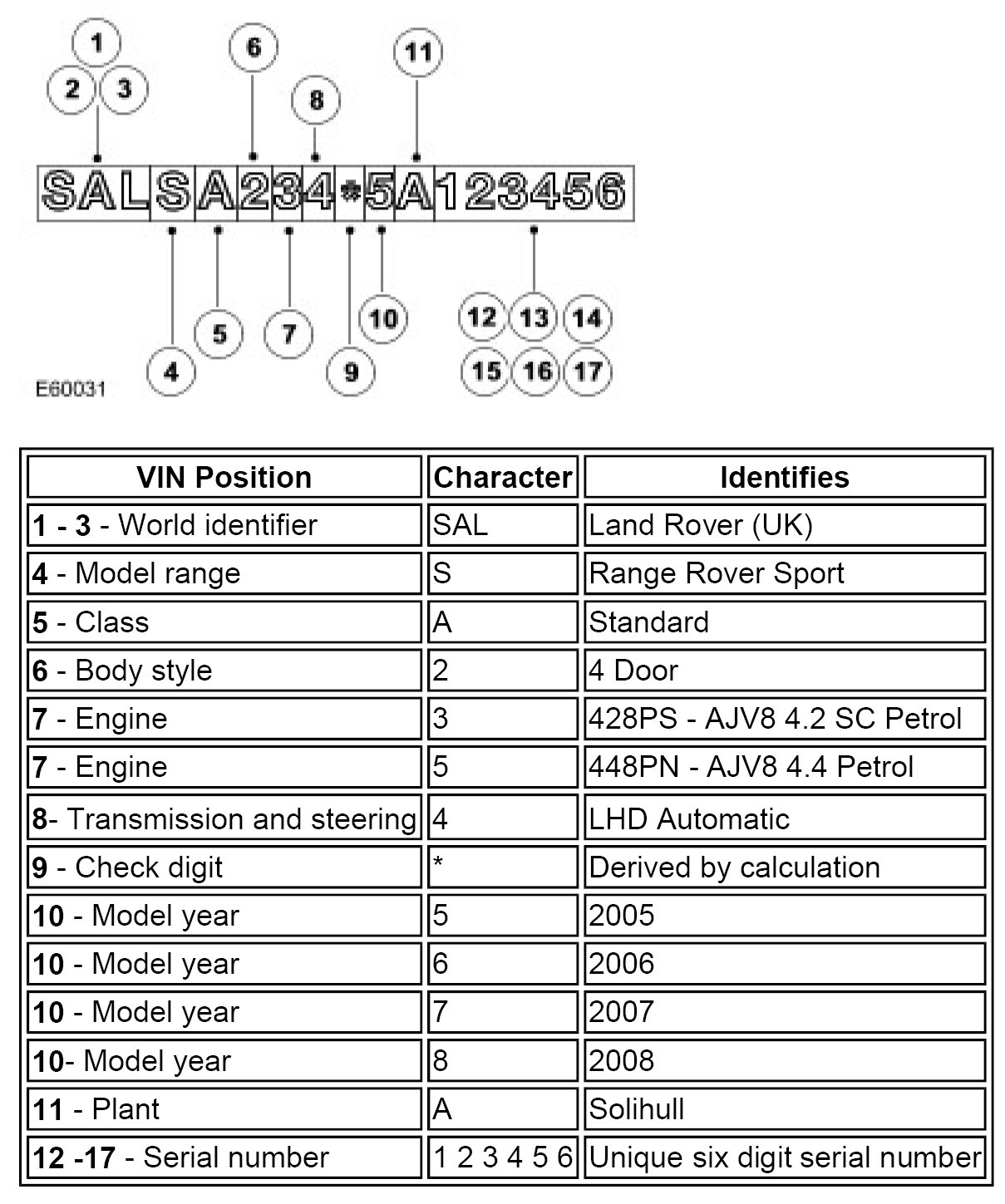 4.4 Litre V8 and 4.2 Litre V8 SC Petrol Engine Serial Number
