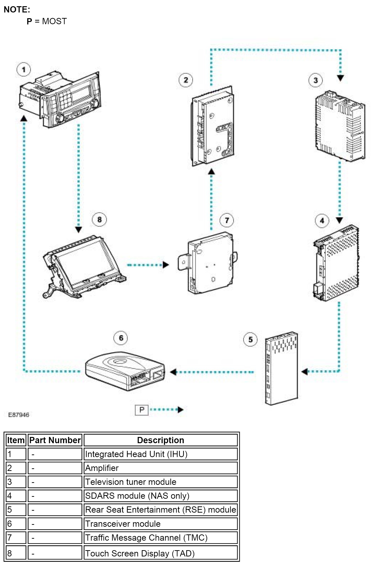 MOST is a synchronous network. A timing master supplies the clock and all other devices synchronize their operation to this clock. The timing master for the MOST network is the Integrated Head Unit (IHU).