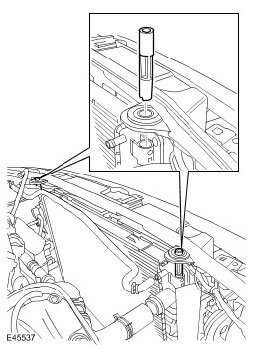 ^ Open the hood and tighten the Torx bolts to 10 Nm (7 ft. lbs.).