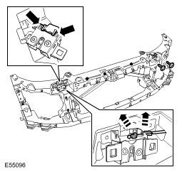 14. With assistance, remove the hood latch panel.