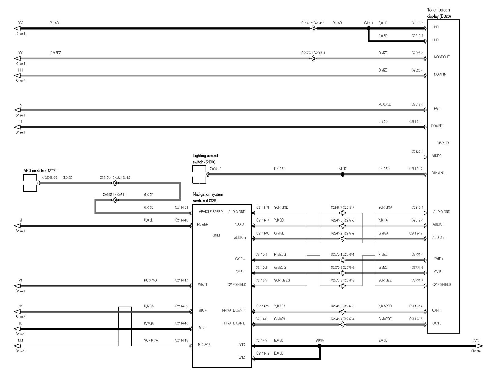 Locations: The location views for connectors and components depicted within these diagrams can be found via the connector's base number (i.e. C0570) at Vehicle/Locations/Connectors. Locations