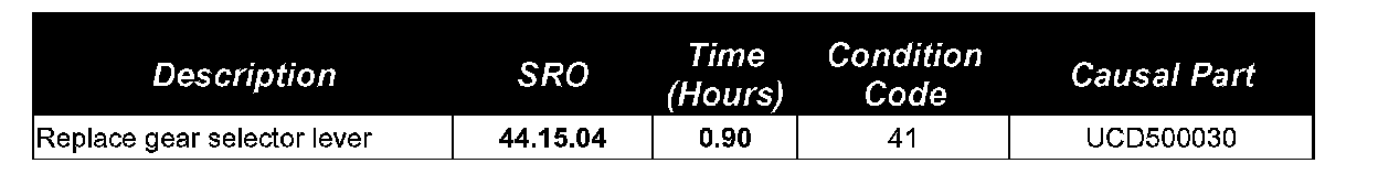 1. Refer to GTR Section 307-05 Operation 44.15.04 and replace the gear selector lever.
