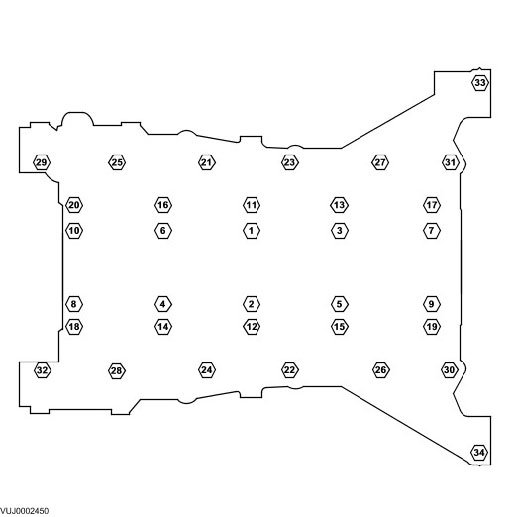 Stage 2: Bolts 33 to 34, tighten to 15 Nm (11 ft. lbs.).