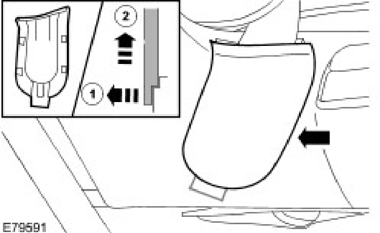 1. Carefully release the clip from behind the front seat base side trim panel.