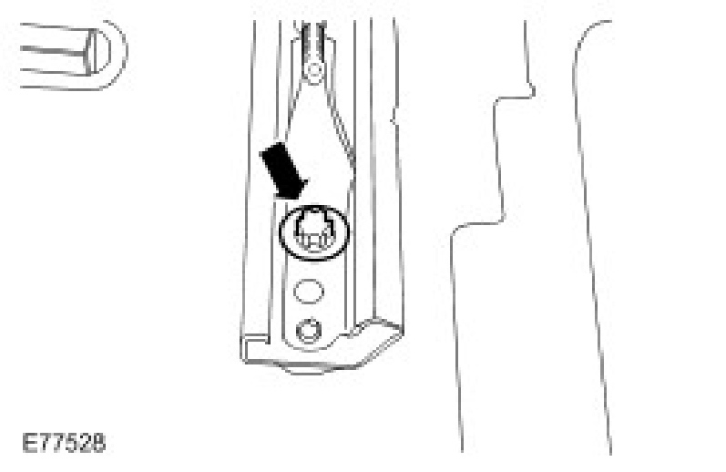 ^ Release the front safety belt lower anchor bolt cover clip upwards and away from the front seat base side trim panel.