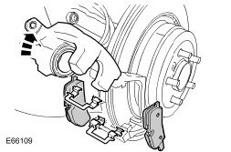 CAUTION: The brake pad wear indicator sensor is easily damaged. Do not use a lever to remove the sensor. Use fingers only.