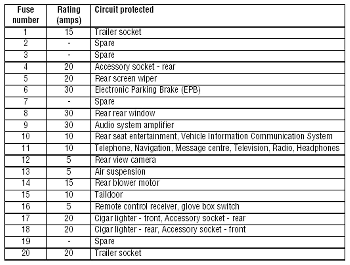 The fuse box is situated on the right-hand side of the loadspace behind the rear loadspace access hatch. Pull the handle to open the panel.