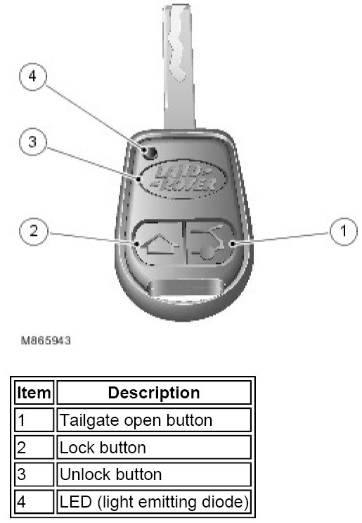 On vehicles from 2007MY the remote handset changed to a folding blade type. The blade is released from the stowed position by pushing the key release button on the remote handset. The battery on this type of key is non-serviceable and recharges while the engine is running. If the battery charge is low, the remote operating range is reduced. The battery has a nominal life of 14 years.