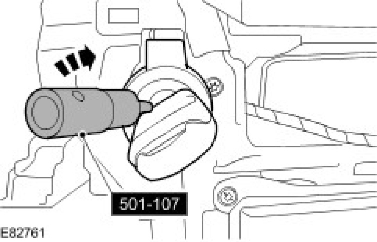 ^ Rotate the special tool counter clockwise to secure the ignition lock cylinder to the ignition lock cylinder housing.
